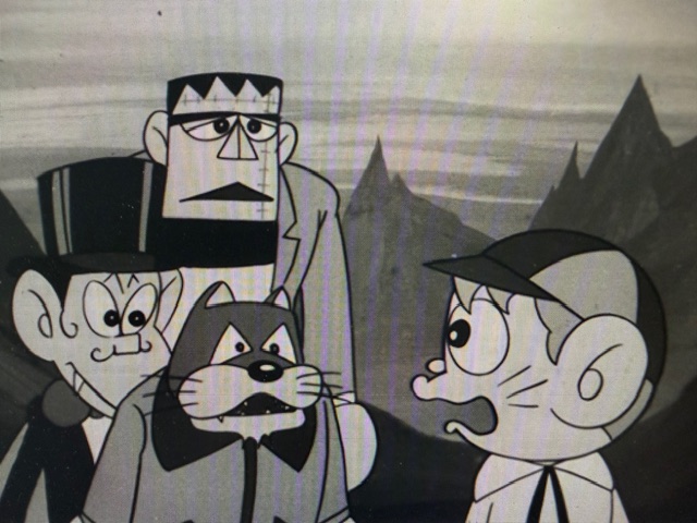 最後に、わたしは、子どもの頃からフランケンシュタインの怪物、ドラキュラ、そして狼男の三大モンスターが好きでした。なぜなら、藤子不二雄Ⓐの『怪物くん』のメインキャラクターだったからです。わたしがわずか4歳だった1968年4月21日から1969年3月23日までTBS系列他にて不二家一社提供の「不二家の時間」枠で「怪物くん」のモノクロアニメ版が放映されました。前番組の「パーマン」に引き続き、東京ムービーとスタジオ・ゼロが交互に製作しています。15分2話構成で全49回(全98話)でしたが、幼児だったわたしは夢中になりました。そこに登場した怪物くんの3人の愛すべき子分であるフランケン、ドラキュラ、狼男のことも大好きになったのです。